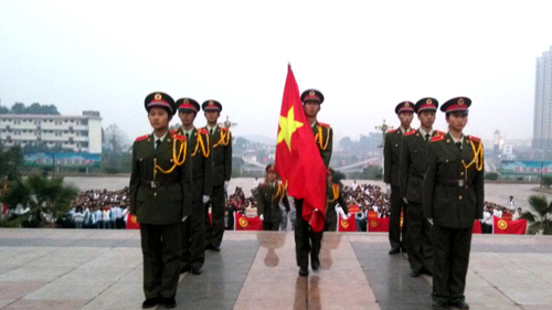 月底的校园已是寒气逼人,可这丝毫没有动摇每一个人的心,晨光微露之时,大家已列队完毕。上午7时整,向伟人致敬仪式正式开始,首先进行升国旗仪式,