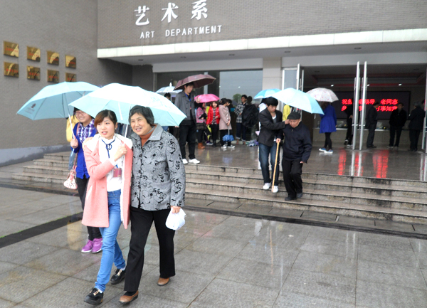会后,天公不作美,突然下起了大雨,考虑到参加此次会议的老同志大都没带伞,且行动不便。团委学生干部们拿着事先准备好的雨伞为老同志们遮风挡雨,“宁可淋湿自己,也不淋湿老同志”的想法在同学们脑海中盘旋。