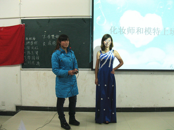 比赛一开始各个化妆师依次带领自己的模特做了详细的介绍,将自己化妆过程中的细节和自己独特的化妆手法与大家分享,在化妆师精妙的修饰下,每个模特或娇艳魅惑,或高贵典雅,或青春动感,或甜美可人 ,一次又一次的吸引着观众的眼球。在同学们的鼓动下,老师也不甘示弱,随后本次比赛的特邀嘉宾经管系的叶老师以卢茜老师为模特,为大家分享了自己的化妆秘诀,同时现场给大家展示了化妆技巧,为在场的所有女性同学上了一堂生动的化妆课。