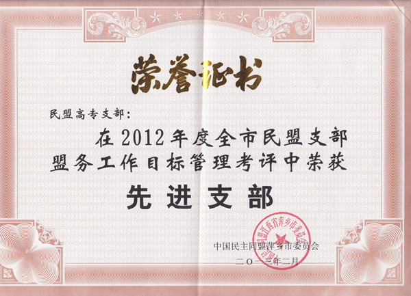依据民盟萍乡市委盟务工作目标管理考评办法,经盟市委考评小组公平、公开、公正评定,民盟萍乡高专支部在自身建设、社会服务和参政议政方面表现突出,综合考核成绩名列前茅,荣获