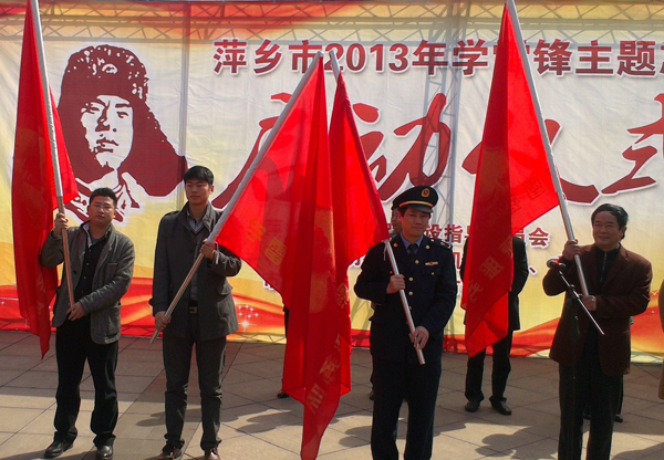3月4日,萍乡市纪念毛泽东“向雷锋同志学习”题词五十周年暨2013年学雷锋主题志愿服务活动启动仪式在绿茵广场举行。我校青年志愿者协会5名代表和红色旅游志愿者协会10名代表在校团委的带领下,参加了此次活动。 本次活动有129支队伍参加,其中,我校和另外7支队伍被授旗“雷锋月志愿服务者队”。此外,我校青年志愿者协会还被评为2012年萍乡市优秀志愿服务组织称号。