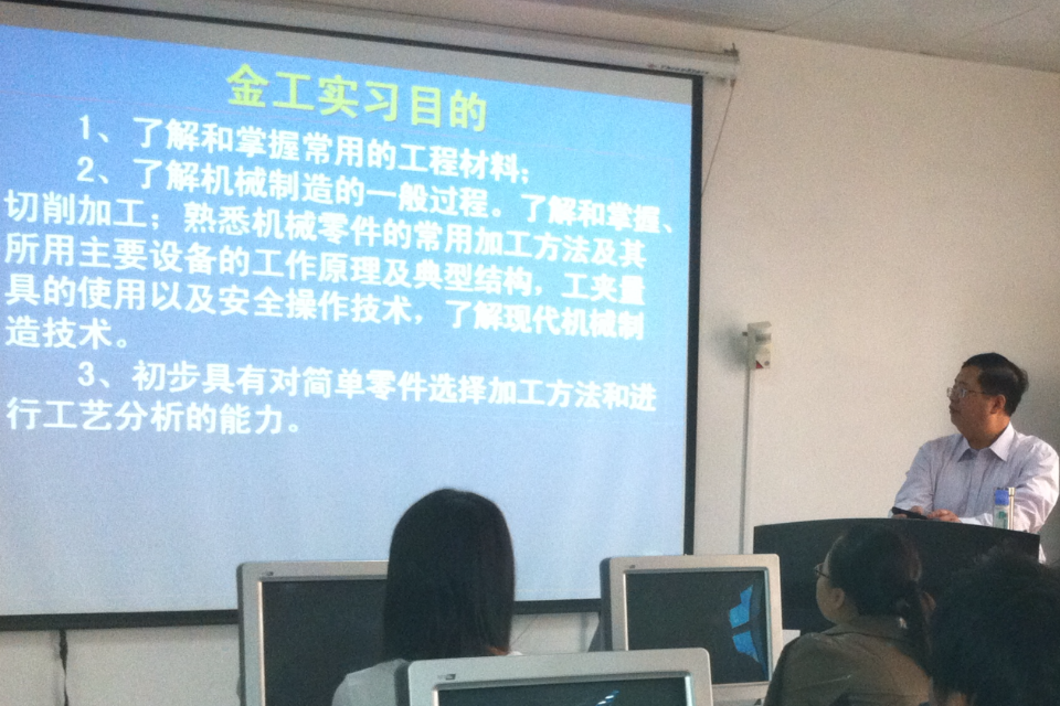 在会上,肖主任就本次金工实习做了热情洋溢的动员讲话。他指出,金工实习即金属加工工艺实习,是工科院校机械类等工科各专业学生熟悉生产加工过程、培养实际动手能力的重要的实践性教学环节。这次金工实习在我校工程训练中心进行,为期十天,从10月15日开始,10月24日结束,通过金工实习,学生可以了解到传统的机械制造工艺和现代的机械制造技术。