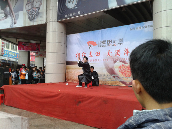 近日中午,天气微寒下着小雨,但志愿者热情满溢。我校数学系青年志愿者协会、教科系青年志愿者携手“麦田”计划行动,一起来到萍乡步行街前门的南昌百货大楼下,参与“中国麦田计划-萍乡团队周年庆暨世界志愿者日”活动。