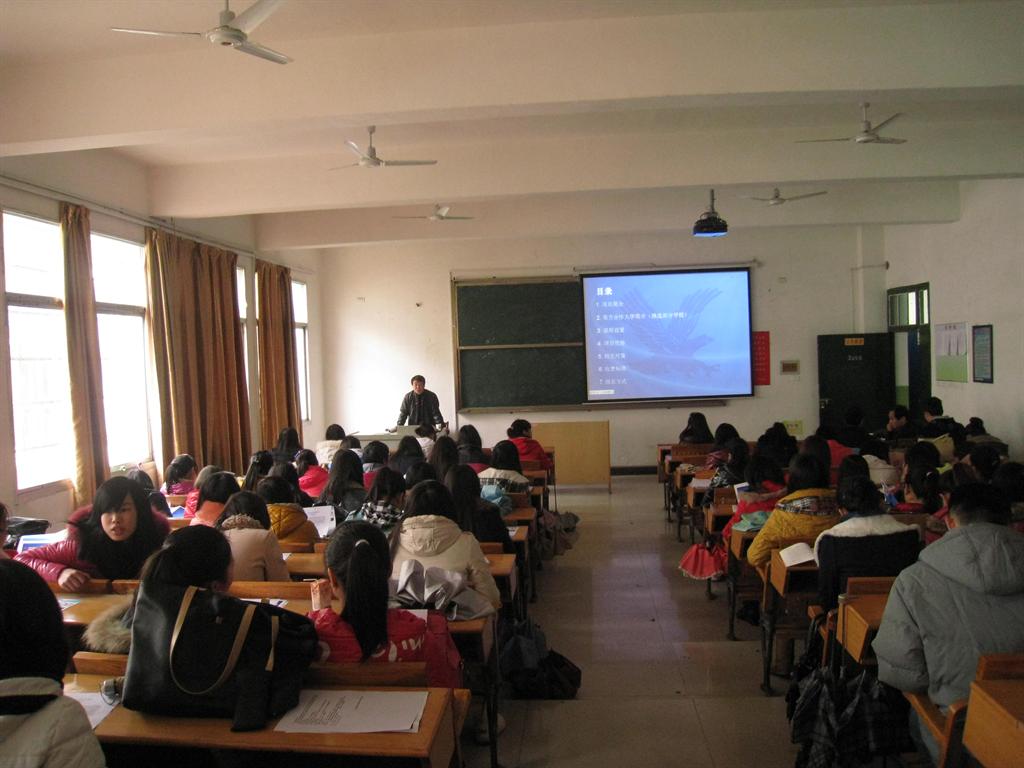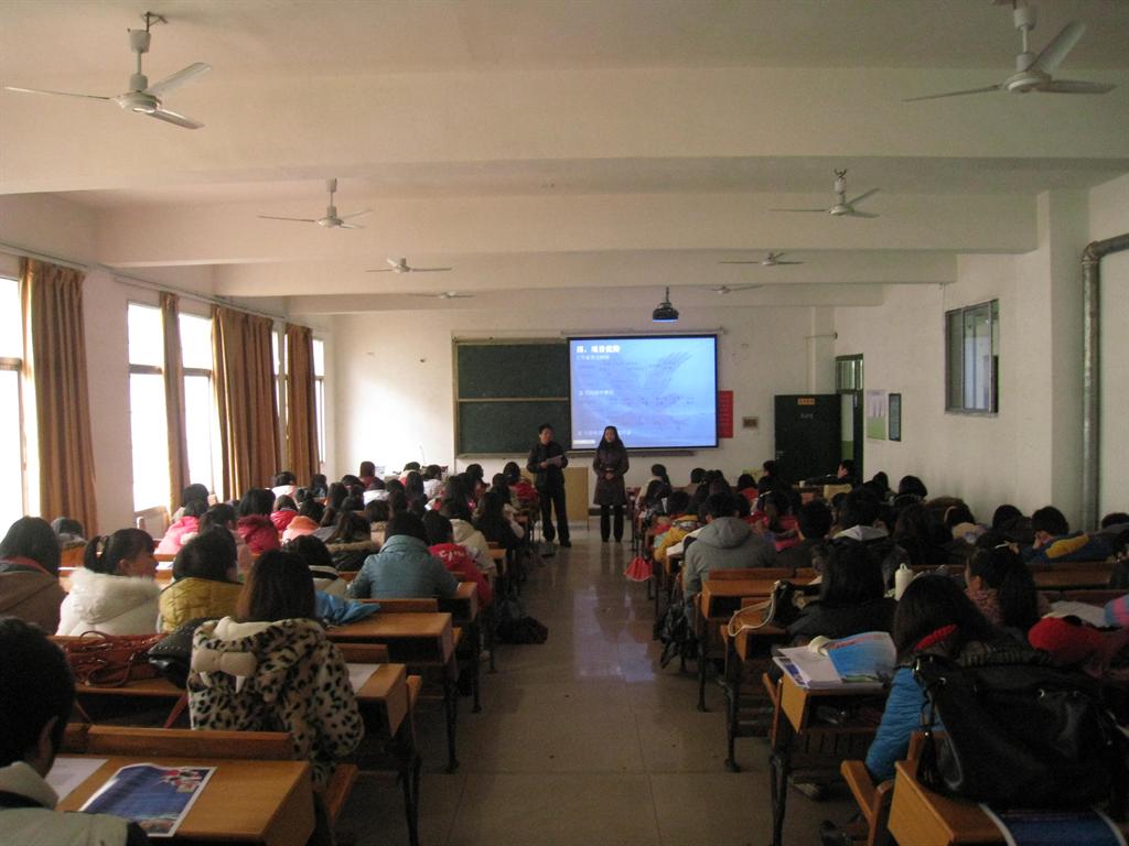 12月18日上午,在英华楼3304,江西省外语学会会长、南昌航空大学硕士生导师况新华教授一行莅临外语系进行留学宣讲,宣讲会由外语系主任欧阳咏梅主持,外语系办公室主任曾德清、外语系2013届级全体毕业生参加。