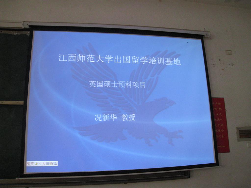 接下来,况教授就“英国硕士预科项目”做了详细的介绍,提到本项目是由国家留学基金管理委员会留学预科学院主办、江西师范大学出国留学培训基地承办并由况新华教授担任常务副院长,旨在通过该项目为广大有志之士提供赴英国留学的渠道。况教授详细介绍了此项目的优势、赴英留学的具体要求、条件,还带领大家一起了解部分英国、澳大利亚的著名大学。