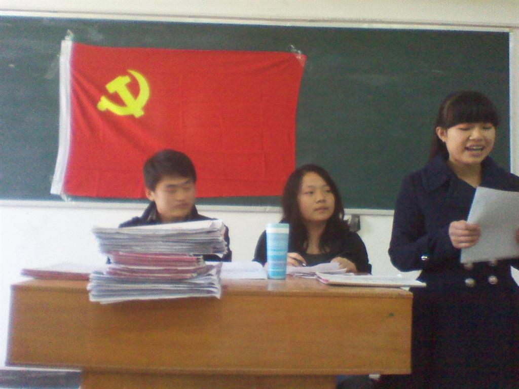 2012年11月26日下午,外语系学生党支部在英华楼3309召开了外语系学生党支部转正大会。出席本次会议的有外语系党总支宣传委员李存晰老师、学生党支部书记彭侃老师及培养、介绍人,由09级学生党员胡建霖、何聪娥主持。