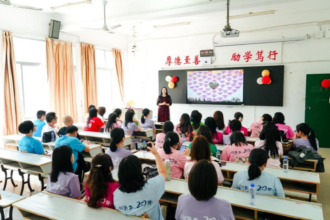 会后,2000级英语本科班班主任欧阳咏梅召开了一个别开生面的班会课。她带领校友们在曾经上课的教室寻找读书的感觉,重温过去的岁月,在热烈而又温暖的气氛中,校友们仿佛回到了当年在校学习生活的青春时光,感慨岁月如梭,一切恍如昨日。