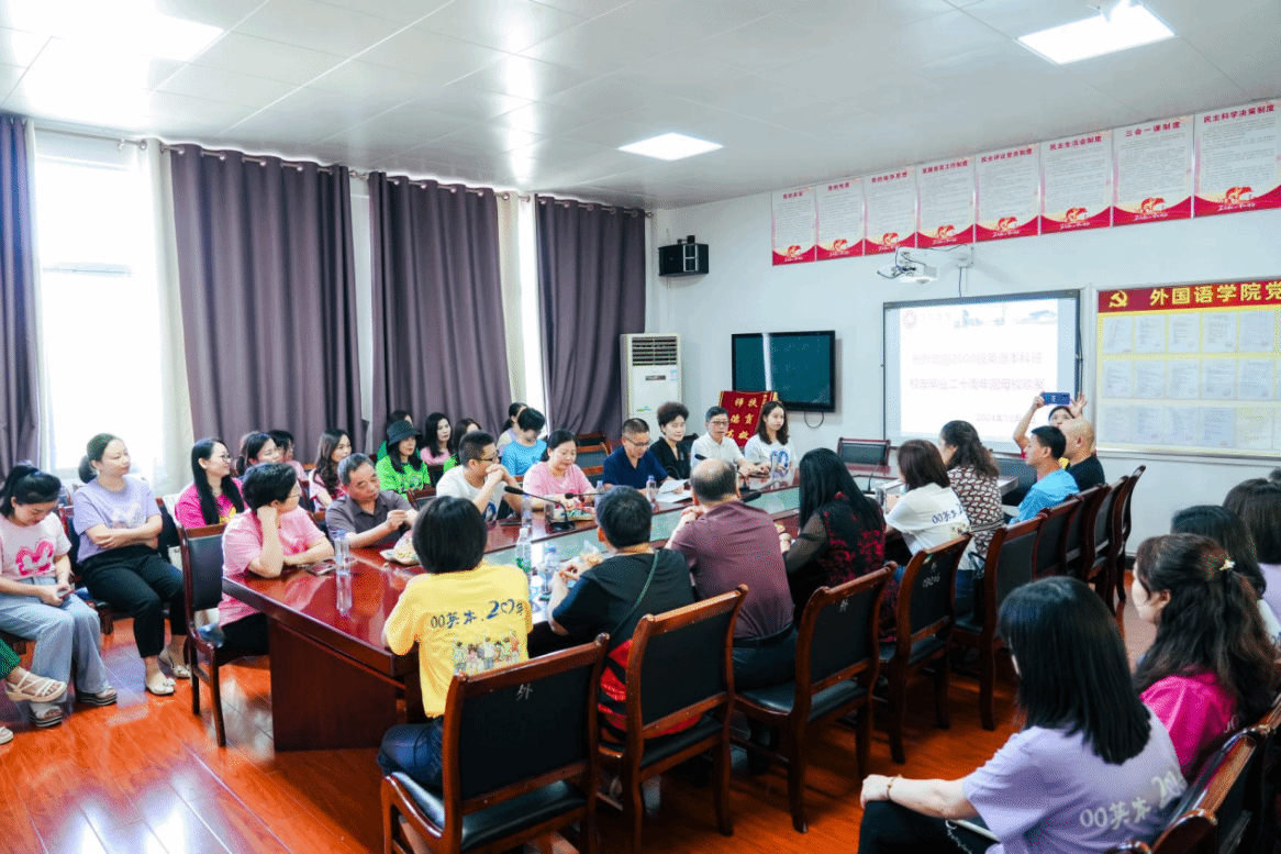 金风送爽,丹桂飘香。10月5日上午,我校外国语学院2000级英语本科班(我校与江西师范大学联合培养的第一届本科班)校友约40余人从全国各地返回母校,举行了主题为“致青春”的毕业20周年聚会庆祝活动。党委委员、副校长陈永国,党委委员、统战部部长贺晓梅出席活动。招生就业处处长刘德萍,外国语学院党委书记刘佳萍,外国语学院院长欧阳咏梅,退休教师黄柏萍参加活动。
