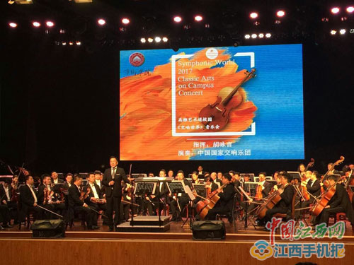 中国江西网萍乡讯 江惺俊、刘德平、记者陈成报道:4月12日晚,由教育部、文化部、财政部联合主办的“2017高雅艺术进校园”《交响世界》音乐会在萍乡学院音乐厅精彩上演,来自中国国家交响乐团的艺术家们用酣畅淋漓的音乐,为该校师生献上了一场豪华的视听盛宴。