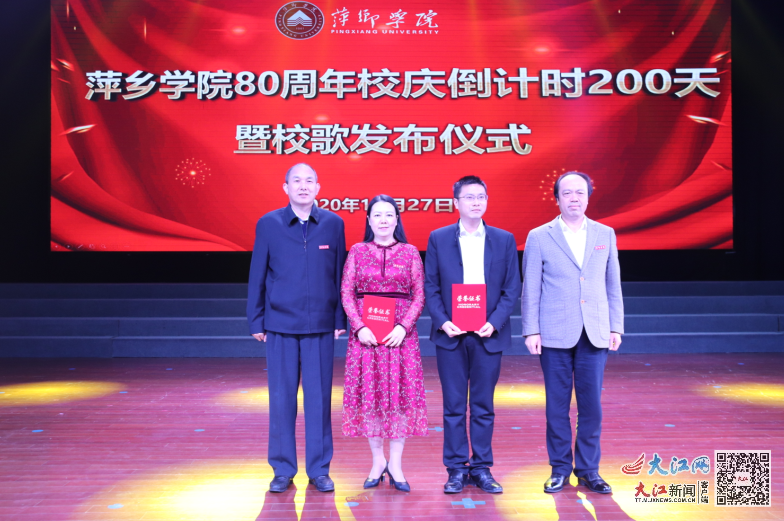仪式现场,陈金印、史焕平为创作者颁发了荣誉证书,并共同启动了校庆80周年200天倒计时按钮;校合唱团演唱了校歌《青春起航》,标志着萍乡学院校歌正式发布。