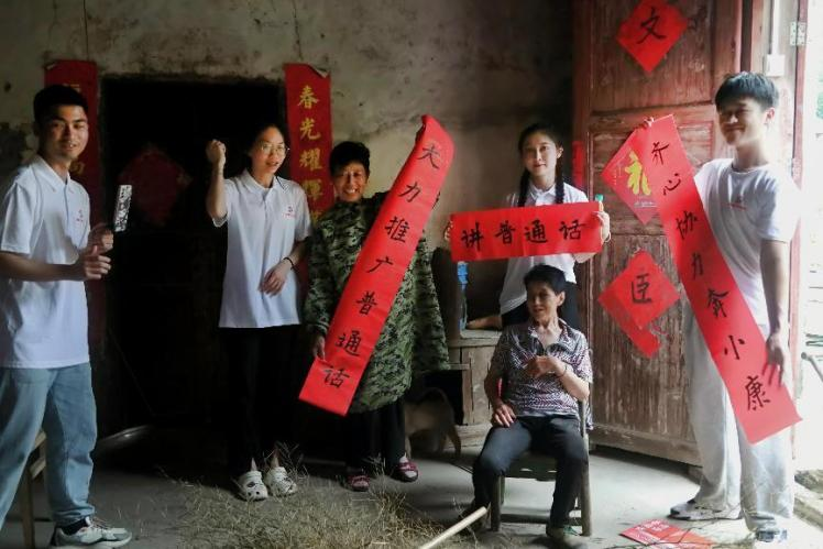 在江西省萍乡市委统战部(市民宗局)的指导下,7月2日至8日,萍乡学院党委统战部、团委、人文与传媒学院共同组建的萍乡学院“同心 同语 同行”暑期“三下乡”志愿服务团深入萍乡市莲花县神泉乡棋盘山黎族村,开展一系列推普活动,丰富乡村语言文化生活,助力乡村振兴,增进民族团结。