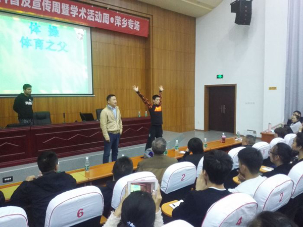 晚上7:10,萍乡学院学术报告厅内灯火通明、座无虚席,应体育学院邀请,中国健美操队国际级教练、国际裁判、席毅林副教授为体育学院全体师生做了题为《运动改变大脑》的精彩讲座。