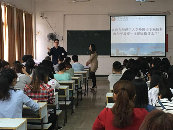 近日,东华理工大学外国语学院院长廖华英教授一行莅临我校外国语学院行访问交流。外国语学院领导班子及部分老师、13级英语本科专业学生100余人参与了此次活动。