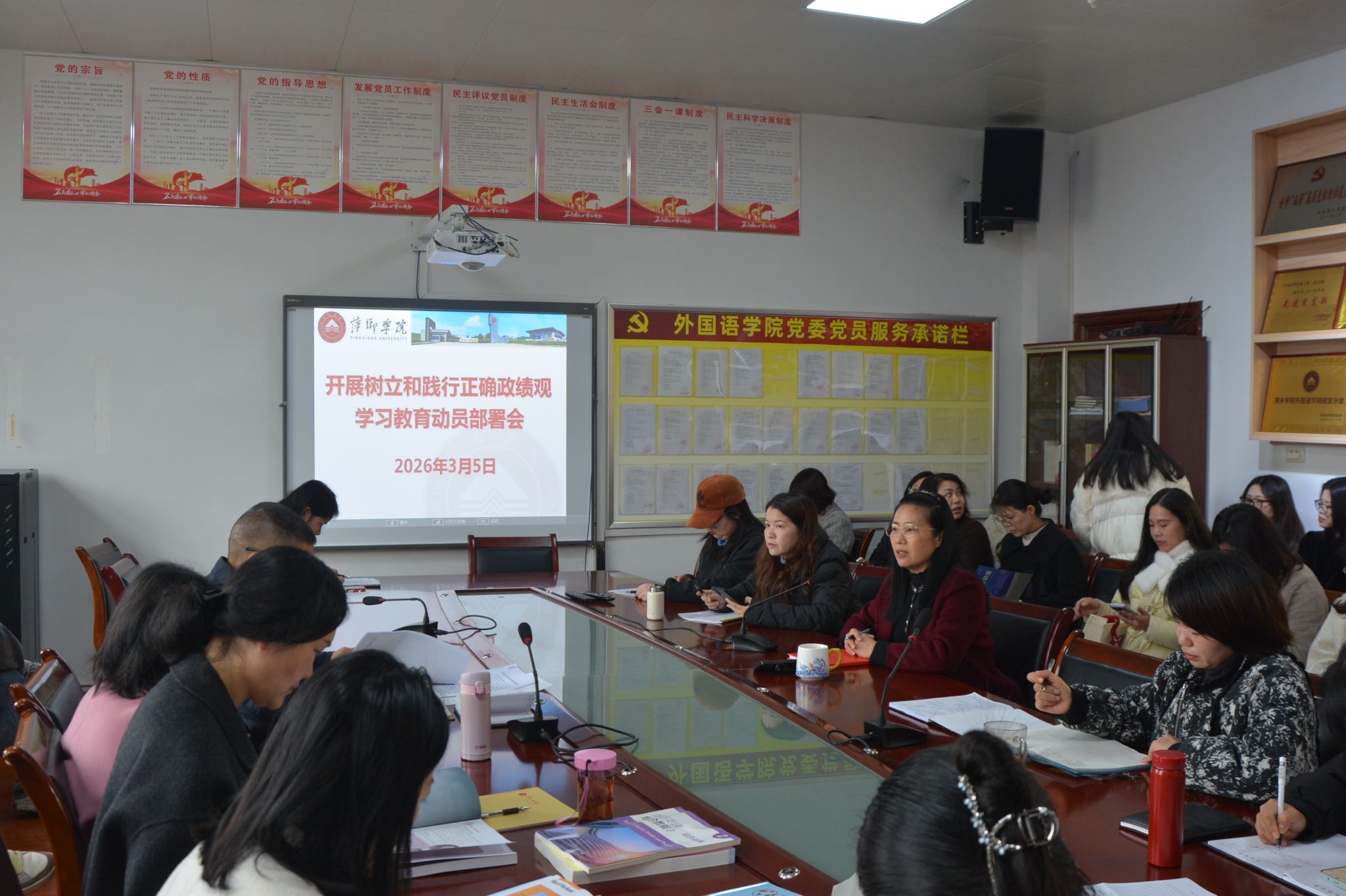 为深入学习贯彻习近平总书记关于树立和践行正确政绩观的重要论述,全面落实学校党委相关工作要求,引导党员干部以正确政绩观引领推动学院高质量发展,3月5日上午,外国语学院在会议室召开树立和践行正确政绩观学习教育动员部署会。学院领导班子成员、全体教职工参加会议。